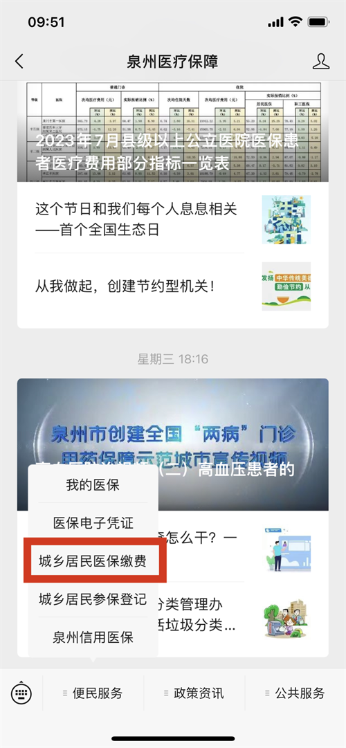 以“泉州医疗保障”微信公众号为例: